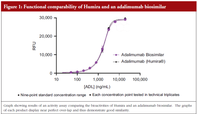 Lastly, Dr Mamelak noted that in some cases, the buffer of the biosimilar can be different to that of the reference product and this can cause differences. Here, a cell-based functional assay is a useful tool to determine if there are any effects on functional properties, see Figure 1.